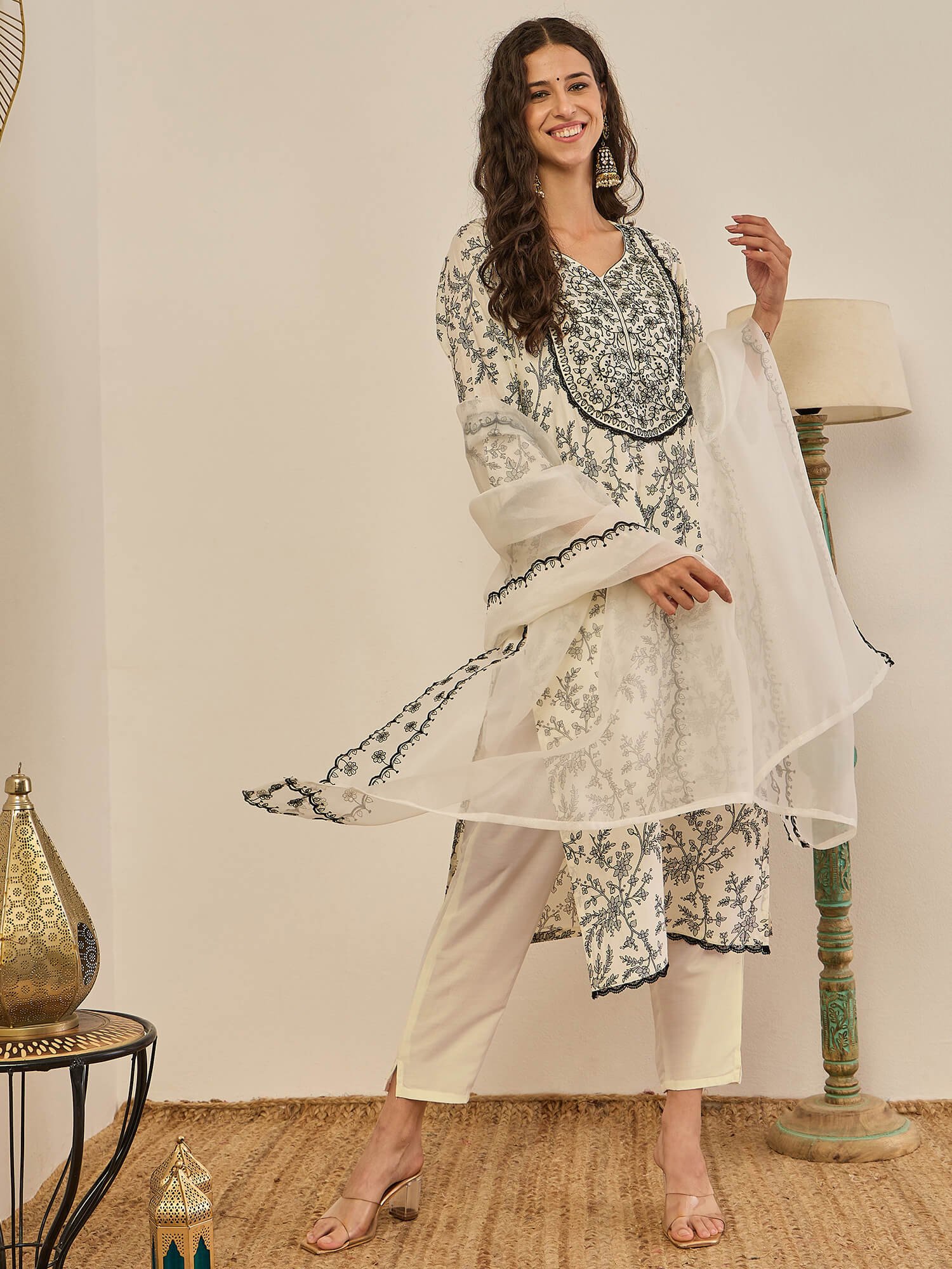 Exude effortless charm with this Floral Embroidered Kurta Set, crafted with delicate thread embroidery and paired with matching pants and a sheer dupatta. The soft fabric and intricate detailing make it perfect for festive occasions, daytime celebrations, and elegant gatherings.