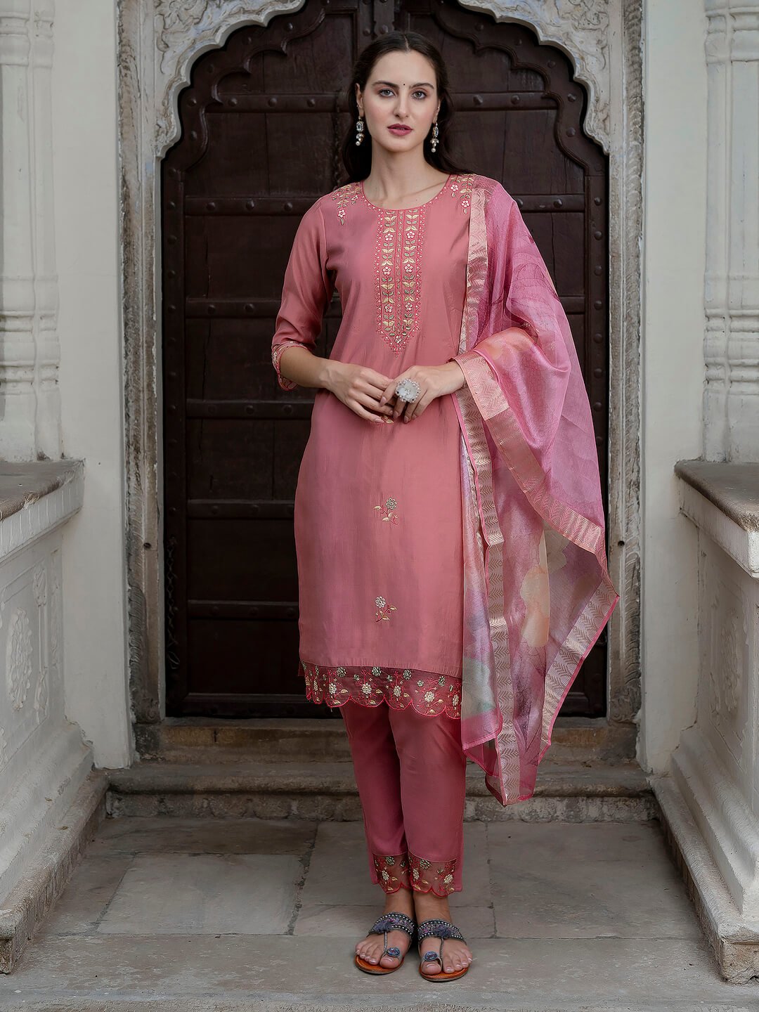Grace your ethnic collection with this elegant blue cotton suit set. The kurta features delicate embroidery on the neckline and sleeves, paired with matching pants and a floral printed dupatta. Perfect for festive occasions, casual gatherings, or traditional celebrations. Fabric: Cotton Color: Royal Blue Pattern: Embroidered Kurta with Printed Dupatta Style: Straight Fit Kurta with Matching Pant Set Occasion: Festive, Casual, Ethnic Wear