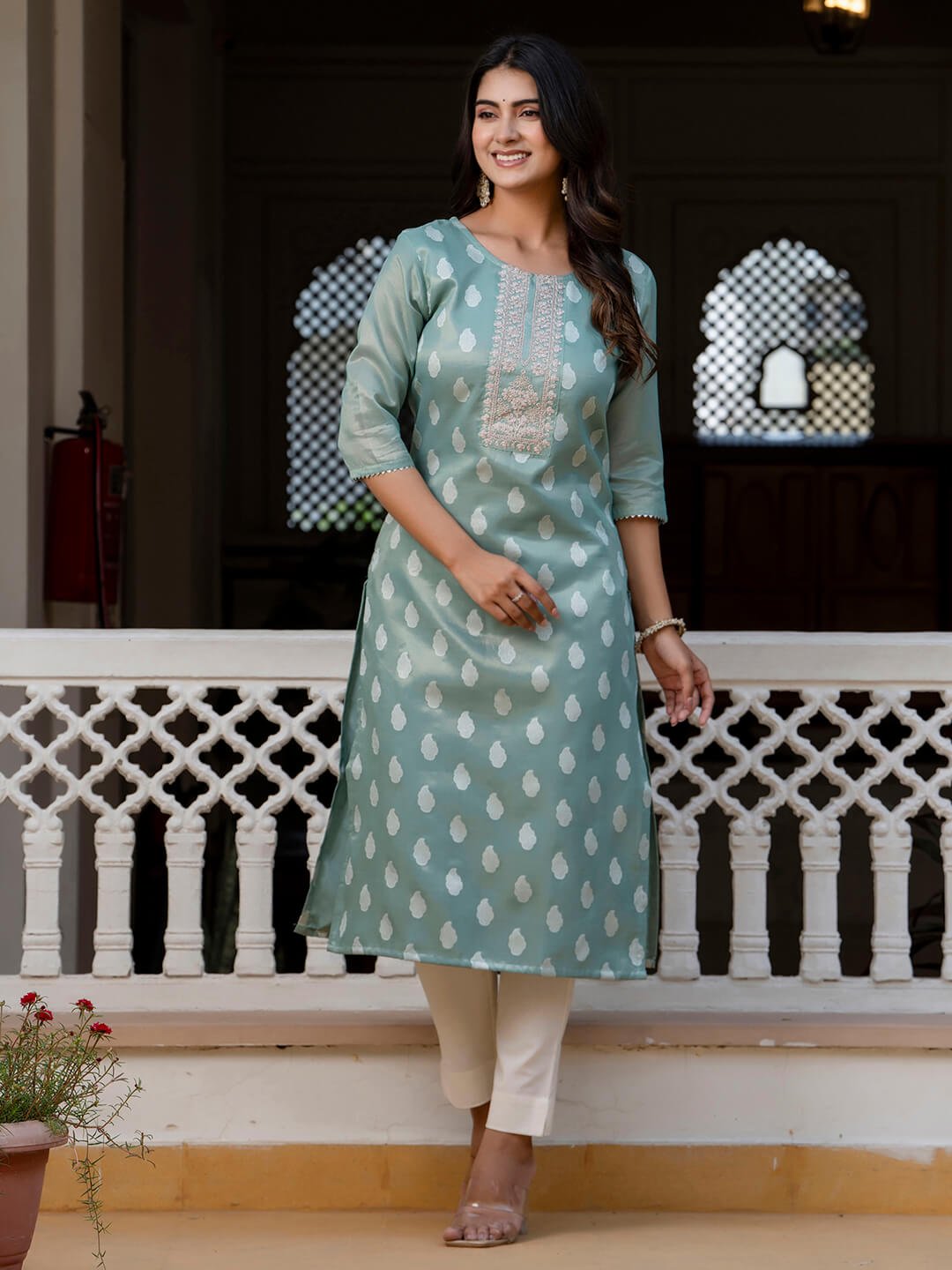 Add a touch of grace to your ethnic wardrobe with this beautifully designed pink embroidered cotton kurti. Featuring intricate thread work, a stylish neckline with lace detailing, and a comfortable straight-cut fit — perfect for festive occasions, casual outings, or office wear. Paired best with white bottoms or churidar for a classic look.