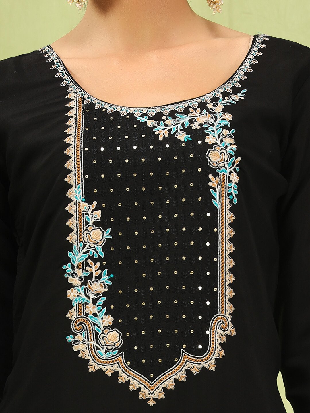 Add timeless elegance to your ethnic collection with this stunning black kurti pant set paired with a vibrant floral organza dupatta. The kurti features delicate embroidery on the neckline with subtle detailing on the front, giving it a graceful and sophisticated look. The colorful floral dupatta enhances the overall charm, making it perfect for festive and special occasions. ? Fabric: Premium Silk Blend Kurti & Pant ? Dupatta: Soft Organza with Multi-Color Floral Print ? Work: Thread Embroidery on Neckline & Front Panel ? Sleeve: Full Sleeves with Stylish Flared Cuffs ? Neck: Round Neck with Embroidered Design ? Fit: Comfortable & Regular Fit ? Occasion: Festive Wear, Party Wear, Office Wear, Family Functions ? Set Includes: Kurti + Pant + Dupatta (3-Piece Set) ? Available Sizes: S to XXL This elegant black ethnic set offers comfort, style, and a rich look — perfect for modern women who love classic fashion. 3?? Meta Title Black Embroidered Kurti Pant Set with Floral Organza Dupatta | PPTOSS 4?? Meta Description Shop elegant black embroidered kurti pant set with floral organza dupatta at PPTOSS. Perfect for festive wear, party wear & office wear. Available in S to XXL. All India & International Shipping Available. 5?? Meta Keywords black kurti pant set, embroidered black kurti set, floral organza dupatta set, ethnic wear for women, festive kurti set online, party wear kurti pant set, designer kurti set, PPTOSS ethnic collection If you want, I can also prepare: ? SEO Long Description (Google ranking friendly) ? Instagram Caption ? WhatsApp Selling Text ? SKU Code Suggestion ? Size Chart Content Just tell me ?